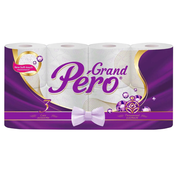 Бумага туалетная 8 рулонов 3-х слойная GrandPero Роскошный аметист